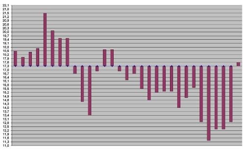 Caratterizzato da una sola decade leggermente  positiva, la prima e da una terza che e'risultata essere la piu fredda degli anni 2000 con ben -2,7°, il mese conferma il trend degli ultimi anni alla diminuizione termica e ad uno spostamento verso la stagione fredda ben piu marcato che negli anni scorsi anche in relazione alle medie clino.