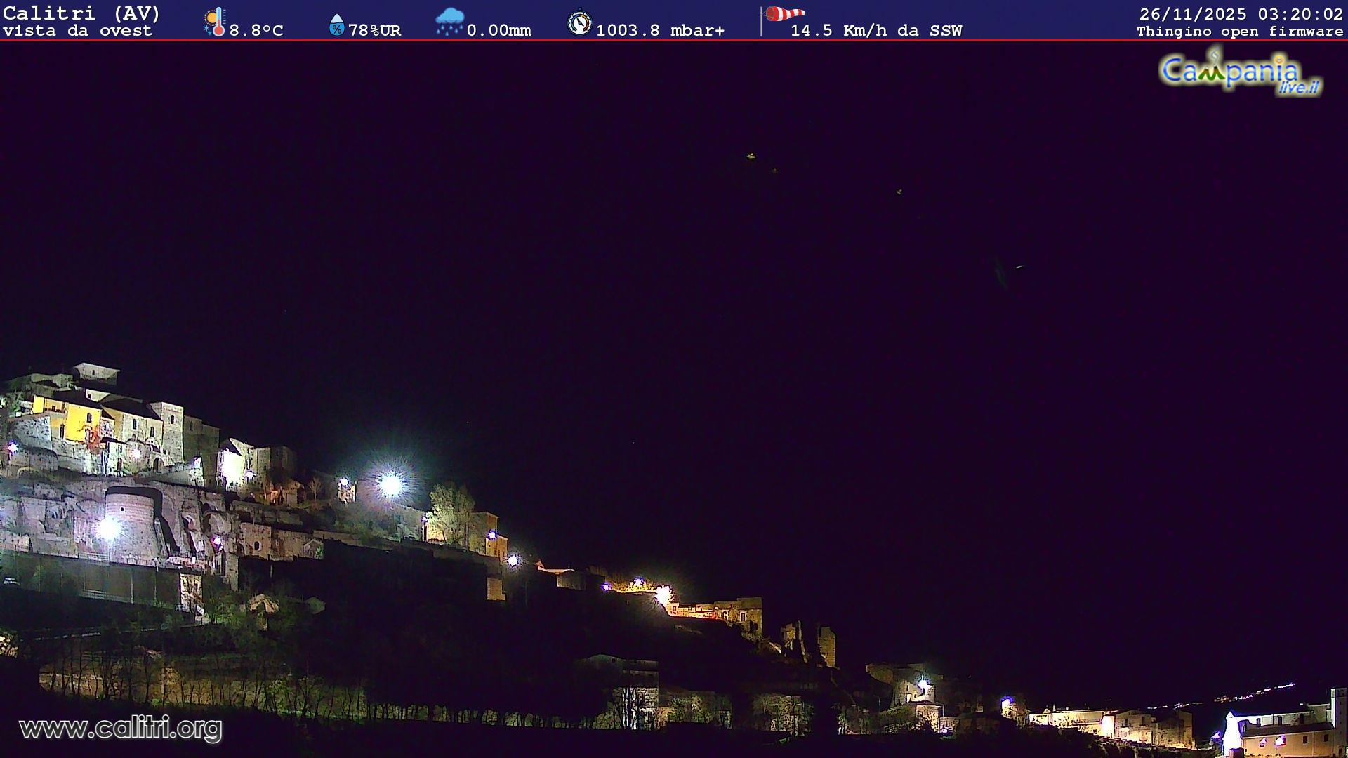 | Calitri (AV) | 566 | 02:55 | 8,9 | 78 | 9,7 N | 25,4 SSW | 1.003,7 | 0,0 | 6,9 | 8,9 |